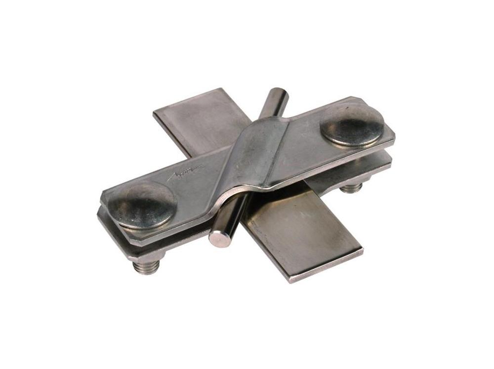 Spojovací dvoušroubová svorka SS FeZn určená k souběžnému spojení kruhových vodičů průměru 10 mm. DT technic 103060