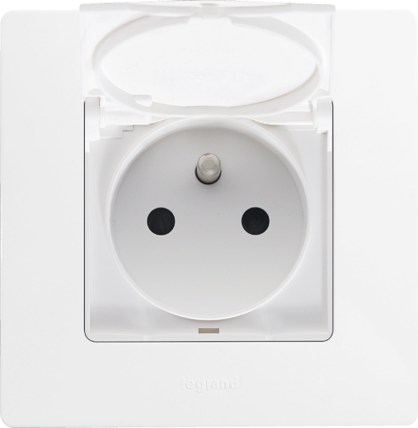 Zásuvky 230V s ochraným kolíkem a clonkami nebo kompaktní dvojzásuvka s natočenou dutinou. Vyšší krytí poskytuje zásuvka s víčkem IP44 vhodná do koupelny.