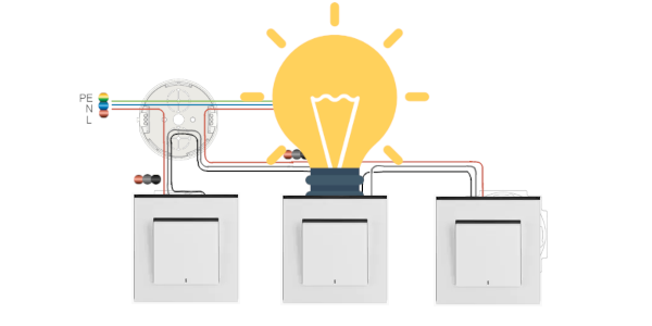 Jak zapojit 3 schodišťové vypínače?